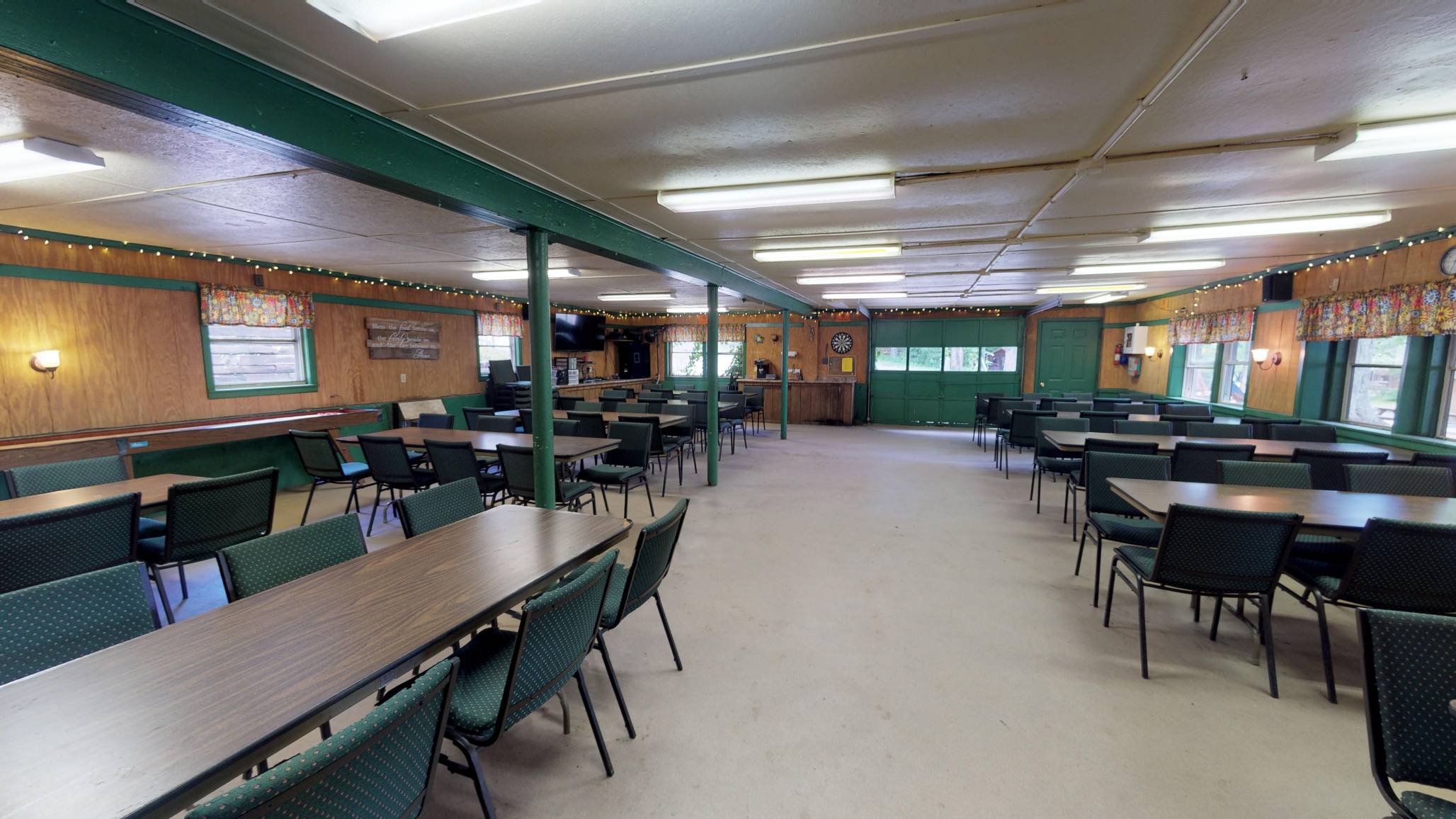 Take a 360° virtual tour of our Rec Hall, a spacious indoor gathering area used for events, games, and group activities. It’s a great place to relax, socialize, and enjoy time together during your stay.